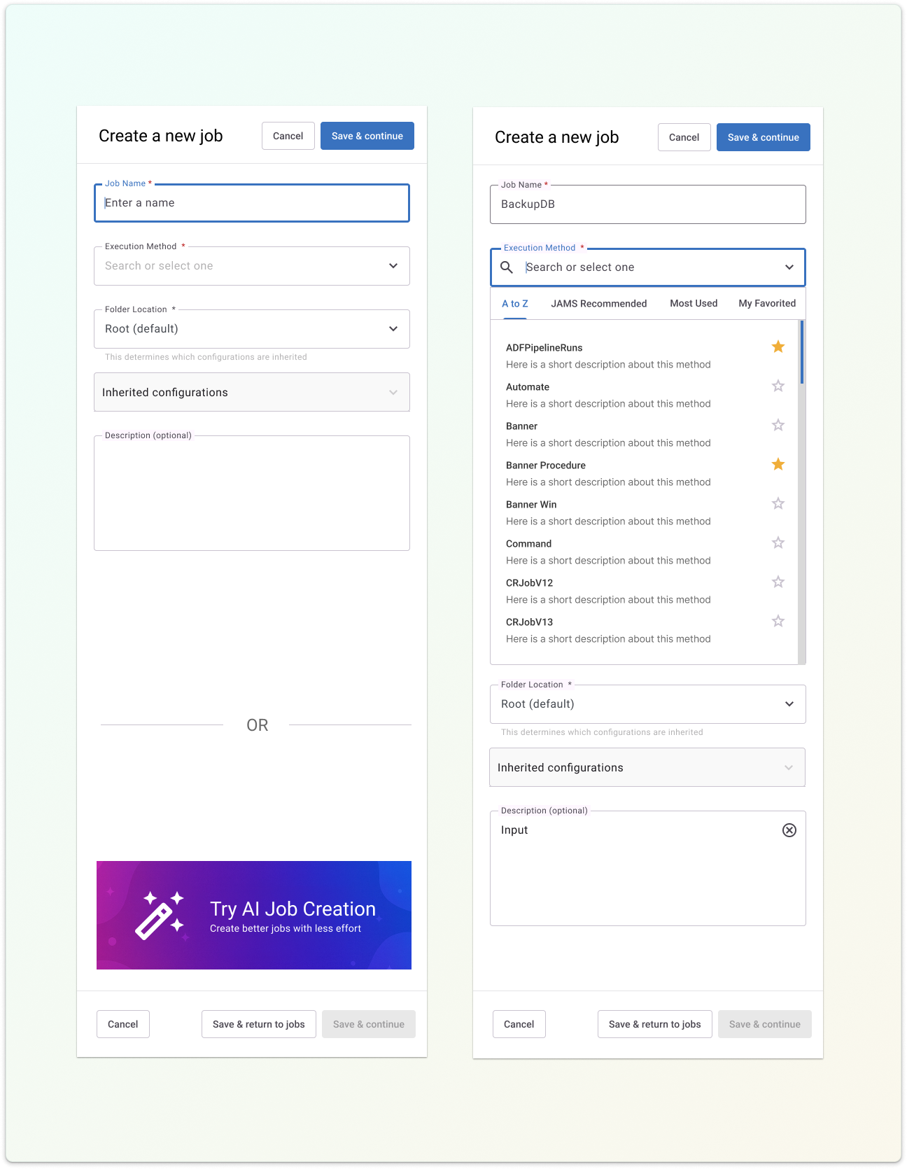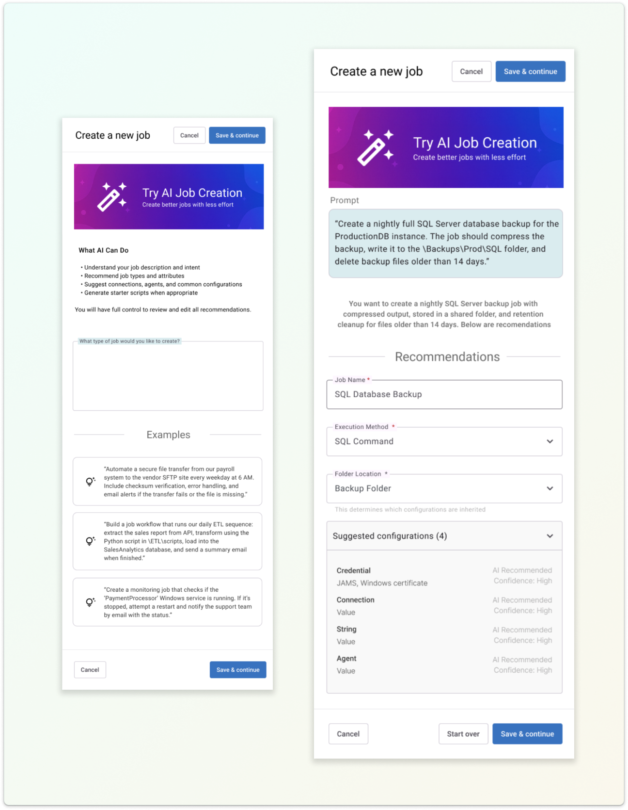 An AI assisted job creation flow was introduced alongside the refined configuration experience.