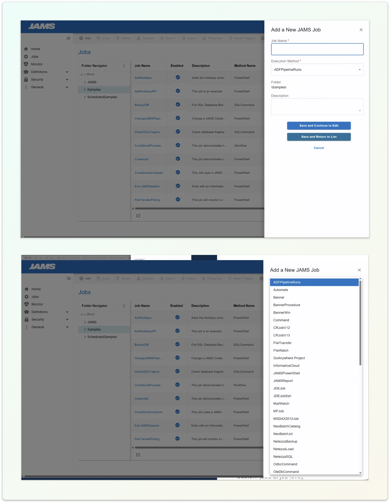 JAMS is a mature enterprise automation platform built to manage complex, mission critical workflows. Its job creation experience was powerful and highly configurable, designed for technical users who valued control and precision.
